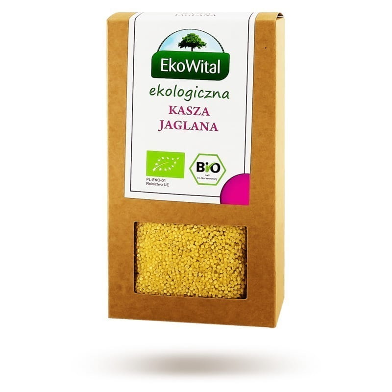 EkoWital kasza jaglana BIO to jeden z elementów zdrowej diety. Otrzymywana z nasion prosa ma mało skrobi, a przy tym sporo łatwo przyswajalnego białka. Wśród kasz wyróżnia się największą ilością witamin z grypy B: B1 (tiaminy), B2 (ryboflawiny) i B6 (pirydoksyny) oraz żelaza i miedzi.
