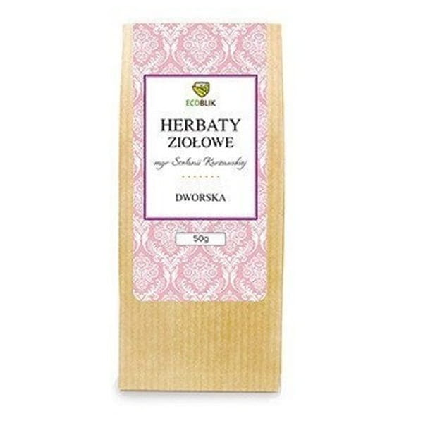 Herbata Dworska to niezwykłe połączenie bogactwa przywrotnika, krwawnika, jasnoty białej z babką szerokolistną oraz słonecznym nagietkiem. Taka delikatna, ożywiająca herbatka z pewnością zadziwi niejednego drogocennym smakiem i aromatem natury. A do tego zapewni zdrowie na co dzień zarówno dzieciom jak i dorosłym.