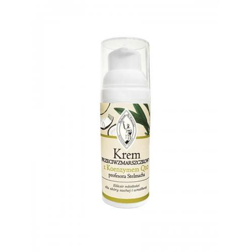 Pielęgnacyjny Krem przeciwzmarszczkowy z Koenzymem Q10 profesora Stelmacha jest eliksirem młodości dla skóry suchej, wrażliwej i zniszczonej. Składniki kremu wykazują działanie regenerujące, odnawiające i uzupełniające naturalne zasoby skóry, dzięki czemu staje się ona gładsza i zdrowsza. W widoczny sposób poprawia jędrność i elastyczność skóry. Zabezpiecza przed niedotlenieniem komórek, redukuje wolne rodniki, zwiększa skuteczność bariery ochronnej naskórka.