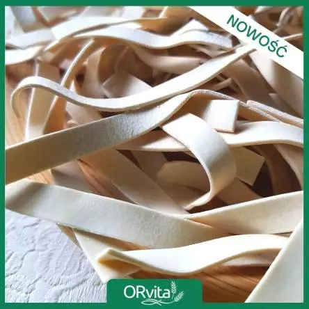 Makaron orkiszowy, jasny, jajeczny ORvita to makaron wytworzony techniką wałkowania z mąki orkiszowej jasnej (typ 630) ORvita, która powstała w wyniku przemiału ziarna prastarej, leczniczej odmiany orkiszu Oberkulmer Rotkorn. Makaron orkiszowy, jasny, jajeczny zawiera na jeden kilogram mąki orkiszowej trzy jaja, jest produktem naturalnym bez dodatków chemicznych.