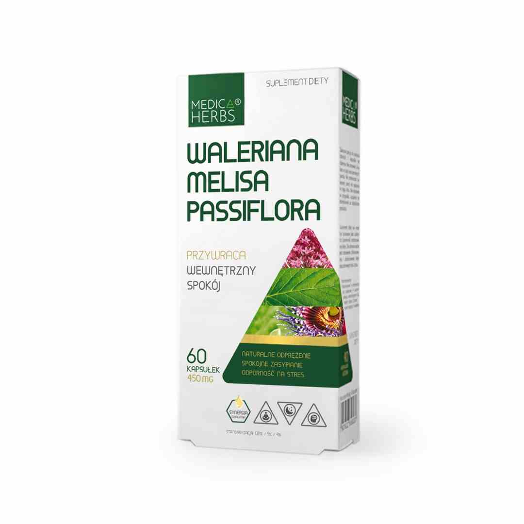 MEDICA HERBS WALERIANA MELISA PASSIFLORA 450mg 60 kapsułek