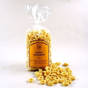 Skład: mąka orkiszowa, świeże jaja (zawartość jaj 30%), sól. Produkt zawiera gluten.