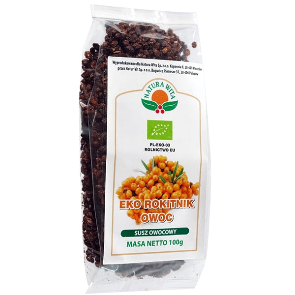 Owoc rokitnik jest naturalnym źródłem witaminy C i chociaż jest jej mniej niż np. w owocach róży, to znacznie wolniej ulega ona rozkładowi podczas ich przechowywania czy przetwarzania. To prawdziwe bogactwo witamin – witaminy z grupy B, witamina E, F, K, P, kwas foliowy, prowitamina A, antocyjany, flawonoidy, fosfolipidy, sterydy (prowitamina D), garbniki, cukry, kwasy organiczne (cytrynowy, jabłkowy, nikotynowy), oraz makro i mikroelementów tj. żelazo, bor, mangan.