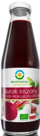 Sok z ekologicznych buraków kiszonych firmy Bio Food zawiera minerały takie jak wapń, potas, magnez i żelazo. Jest to produkt pasteryzowany, a osad, który pojawia się na spodzie butelki to naturalny osad wytrącający się z buraków.